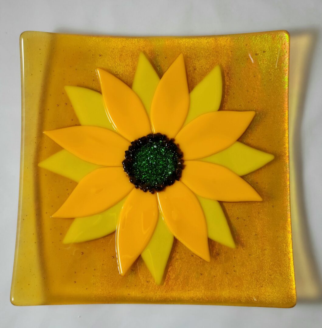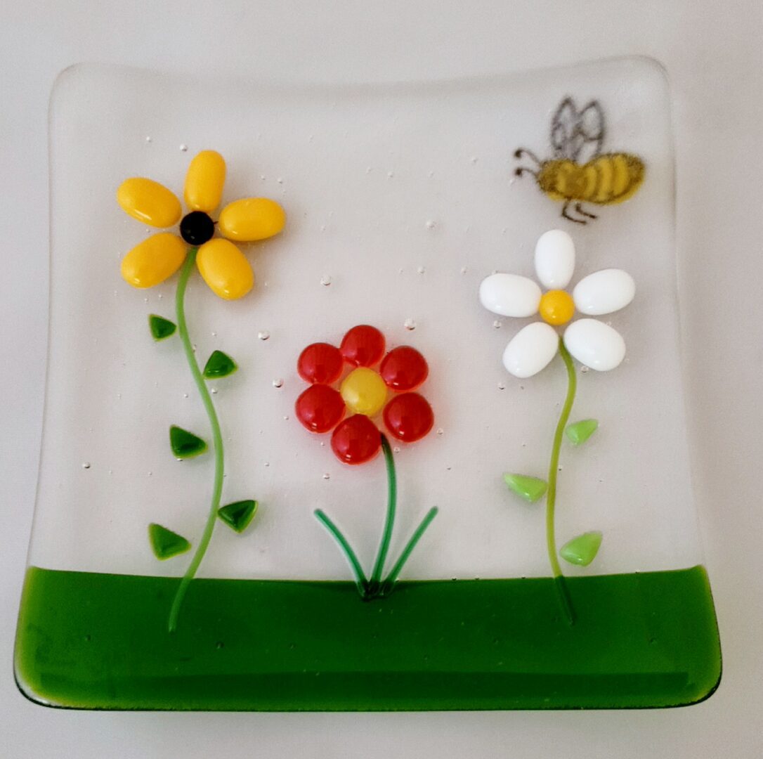 I create functional art glass plates, bowls and platters. I also hand craft decorative items and sculptural glass flowers.